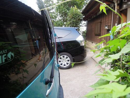 日曜日は地域の川土手草刈りでした。 天気が心配でしたが、なんとか雨は上がって、 むしろ涼しくて絶好の草刈り日和! カングー、こんな天気の時はかなり青く見えますね。 草刈り機を背負って出発! 草を刈っている写真はありませんが、3時間弱、みっちりと…