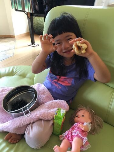 2日目も元気に行くよ~ 採りたての大粒ブルーベリーにご満悦! みんなで記念撮影をした後は~ 車でバビューンと小国まで移動! ジャージに着替えてしゅっぱーつ。 サクッと走り終えてゴールの茶のこへ。 お昼時にこの人数で押しかけるとは… まつさん、ご迷惑…