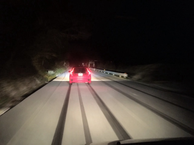2014-12-08 九州HeavenRide 無題 #練習用 土曜の朝一スタートなんで金曜の仕事終わってから移動~ すでにやばい感じ(笑) 到着できたことに乾杯! 翌朝起きたらこんな感じ。 寝る時にはこんなに積もってなかったんですけど。 雪コースだなって思ってたら、 通常コースで行くって(笑) 頑張ろう!